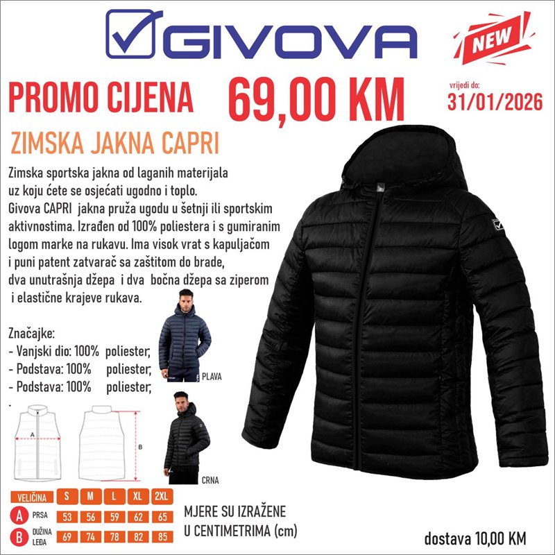 Jakna uz koju ćete se osjećati ugodno i toplo. Givova CAPRI jakna pruža ugodu u šetnji ili sportskim aktivnostima. Ima visok ovra...
